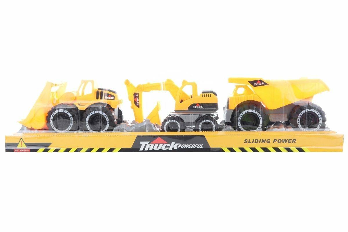 Sada 3 stavebních aut. Balení obsahuje bagr, sklápěčku a nakladač. Rozměry jednoho auta cca 17 x 11 x 10 cm (dle druhu). Rozměry balení cca 59 x 13 x 13 cm. Věk 3+