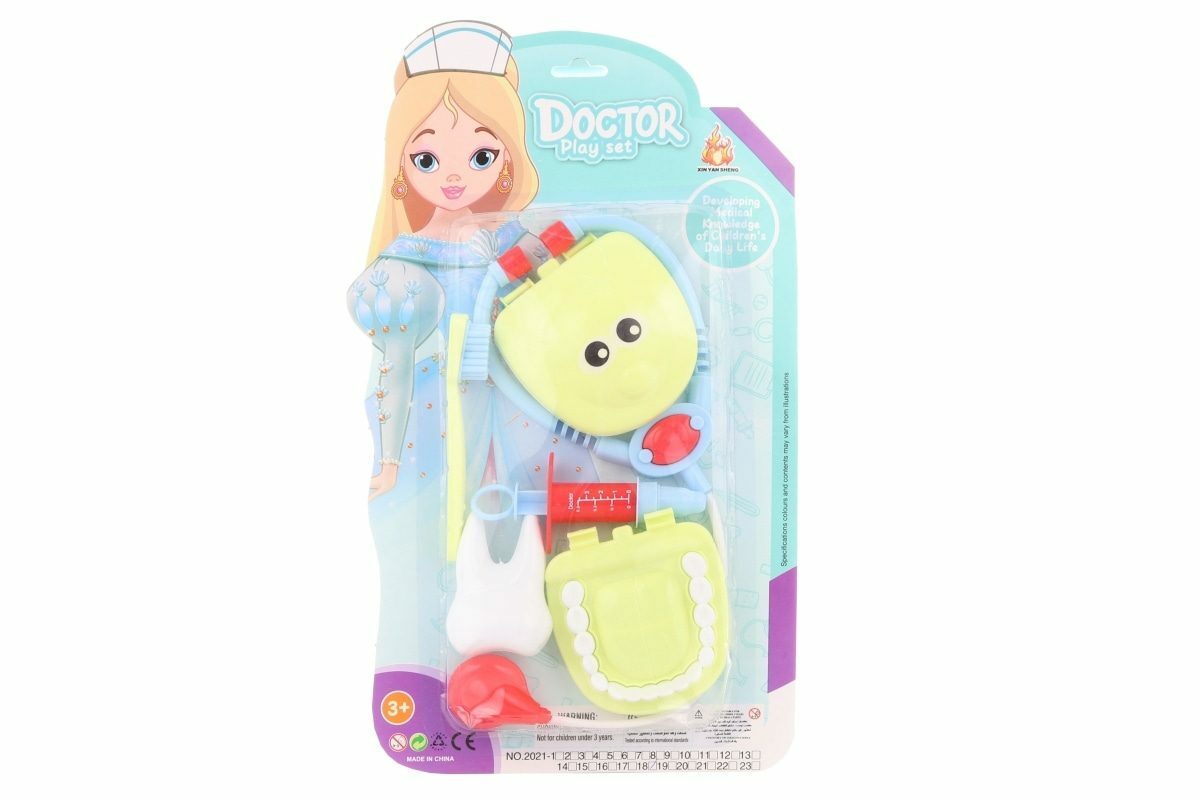 Sada zubařských nástrojů. Balení obsahuje kartáček, injekci, stetoskop, a další doplňky. Rozměr balení 36,5 x 21,5 cm. Věk 3+