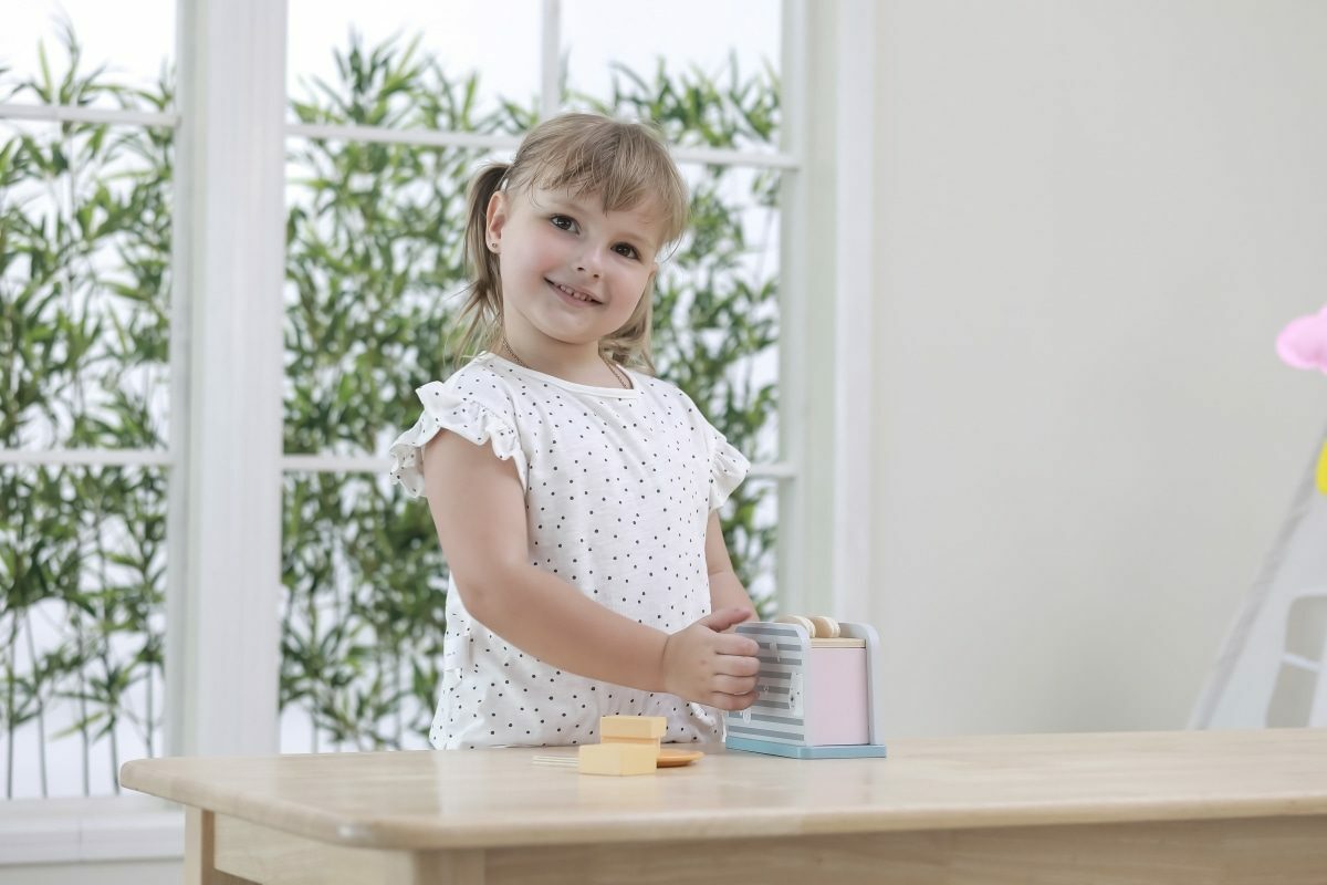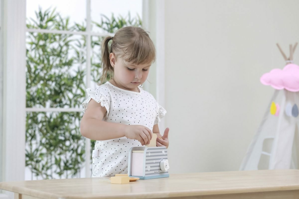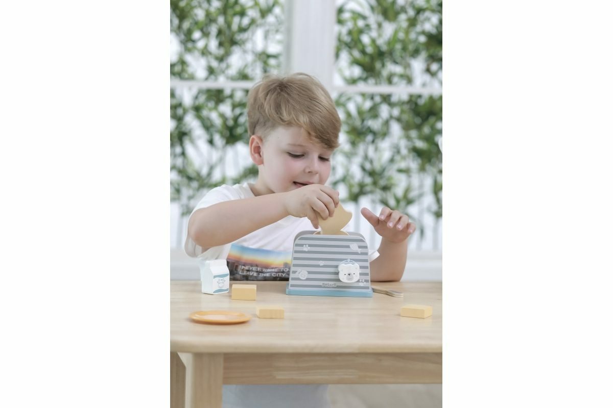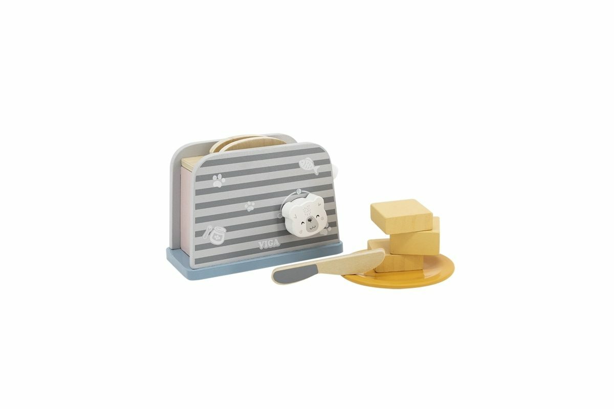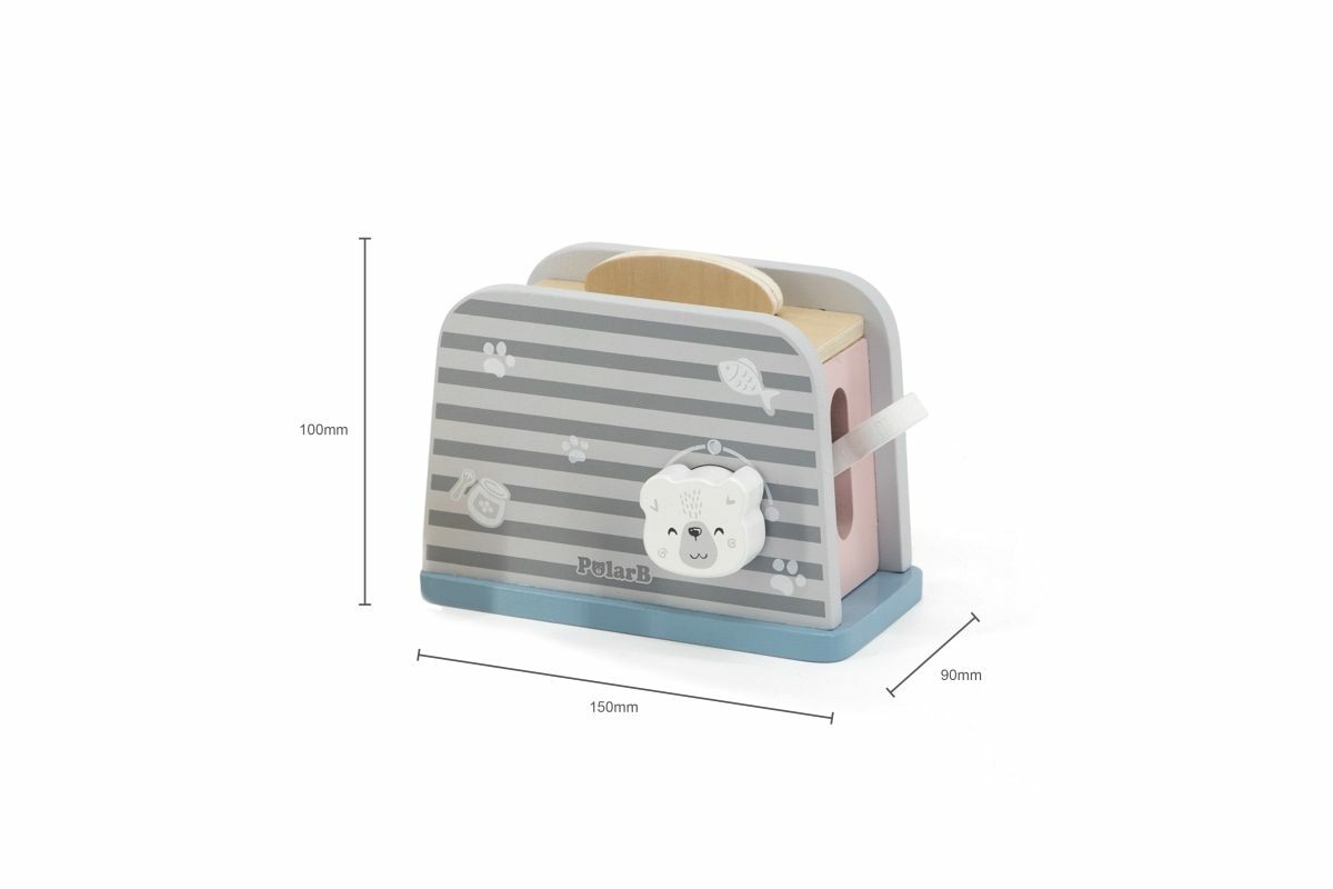 Dřevěný toustovač o velikosti cca 11,5 x 16 x 9 cm. Rozměry balení cca 17 x 16 x 9,5 cm. Věk 3+