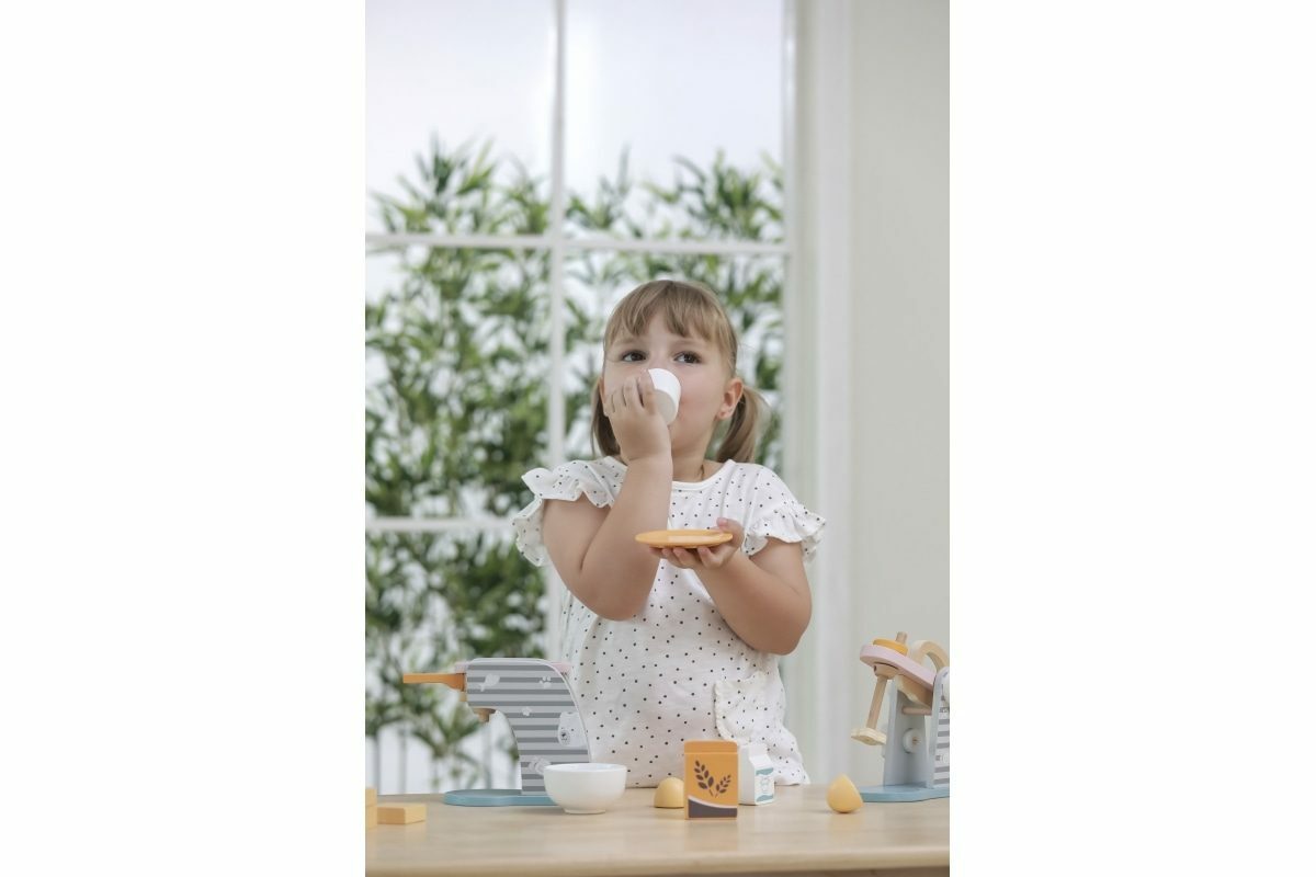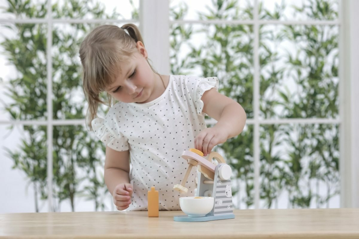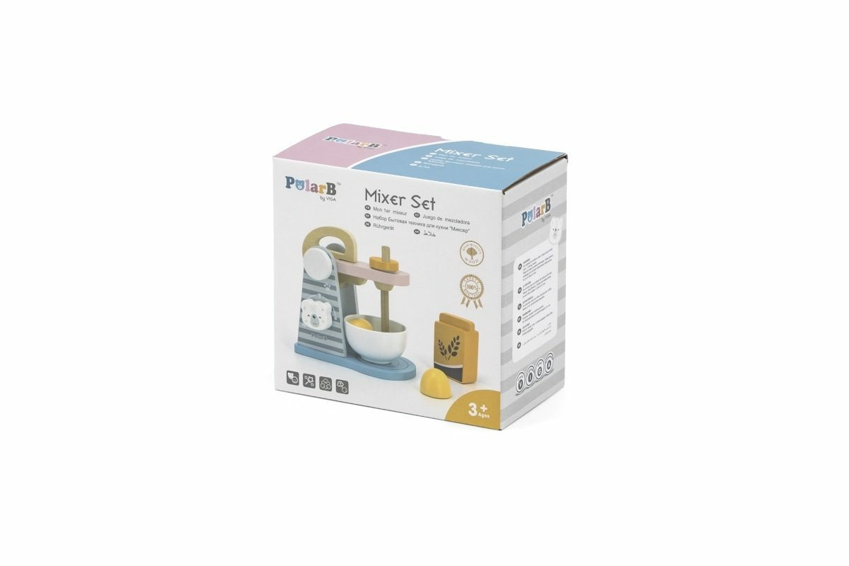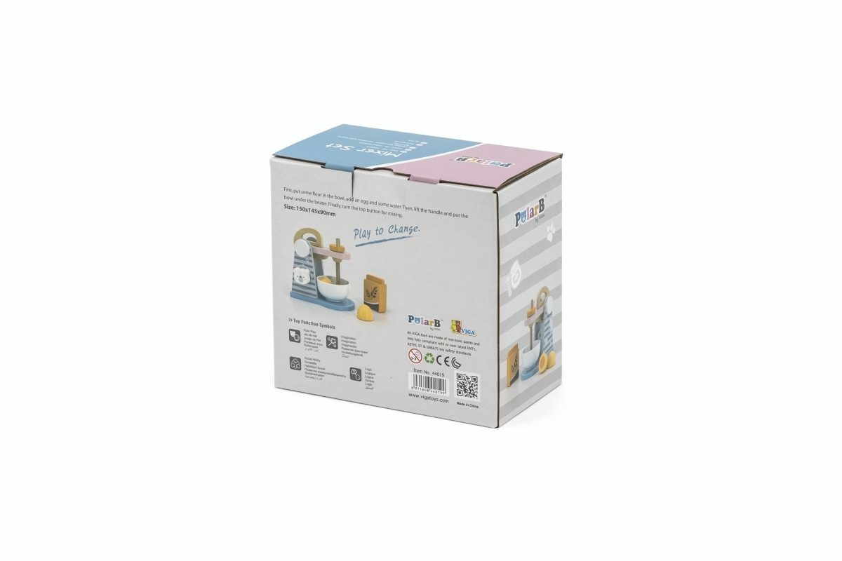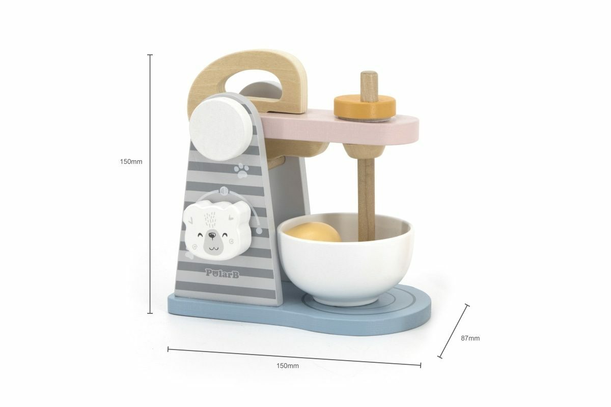 Dřevěný mixér o velikosti cca 15 x 14,5 x 9 cm. Rozměry balení cca 17 x 16 x 9,5 cm. Věk 3+