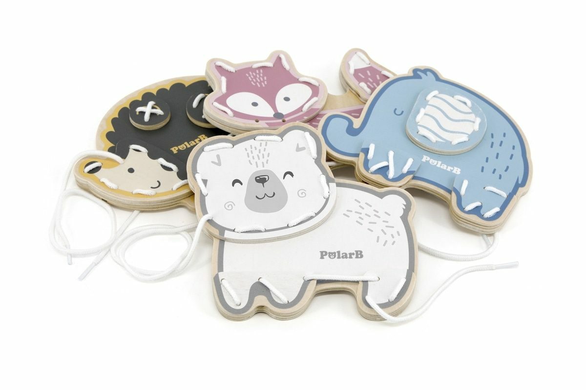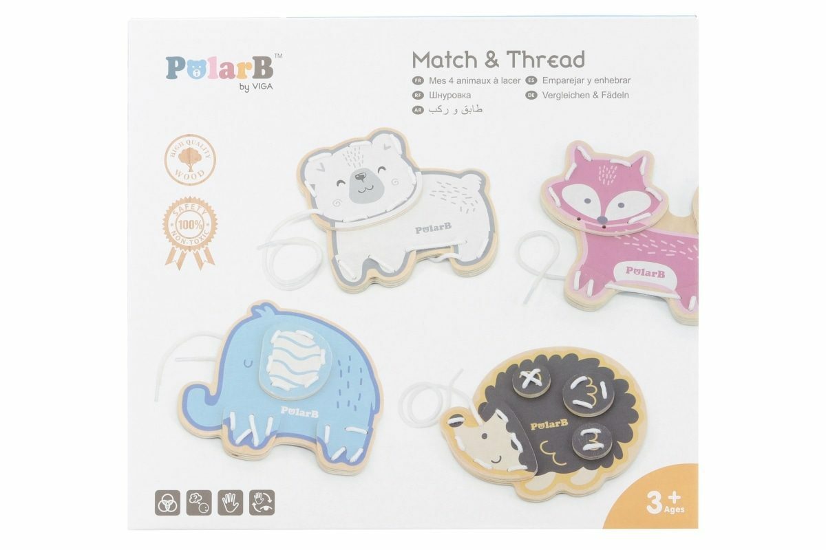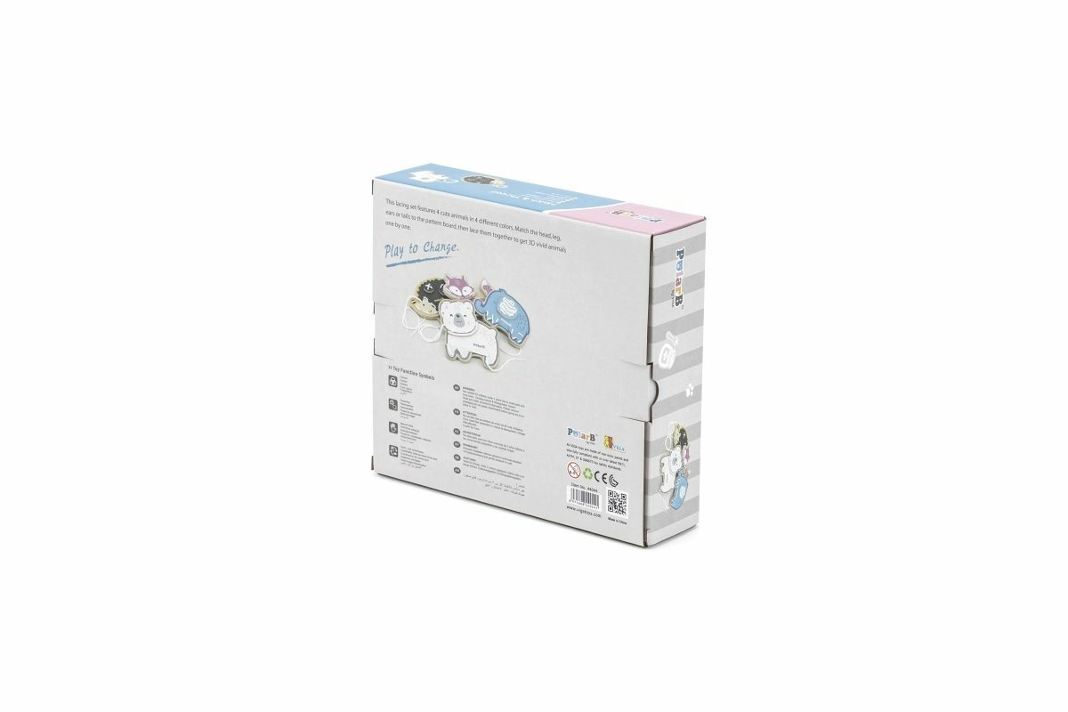 Dřevěné provlékání se zvířátky. Obsahuje 4 zvířátka a 4 povázky. Balení obsahuje praktický šáček na úschovu hračky. Rozměry balení cca 21,5 x 19,5 x 5,5 cm. Věk 3+