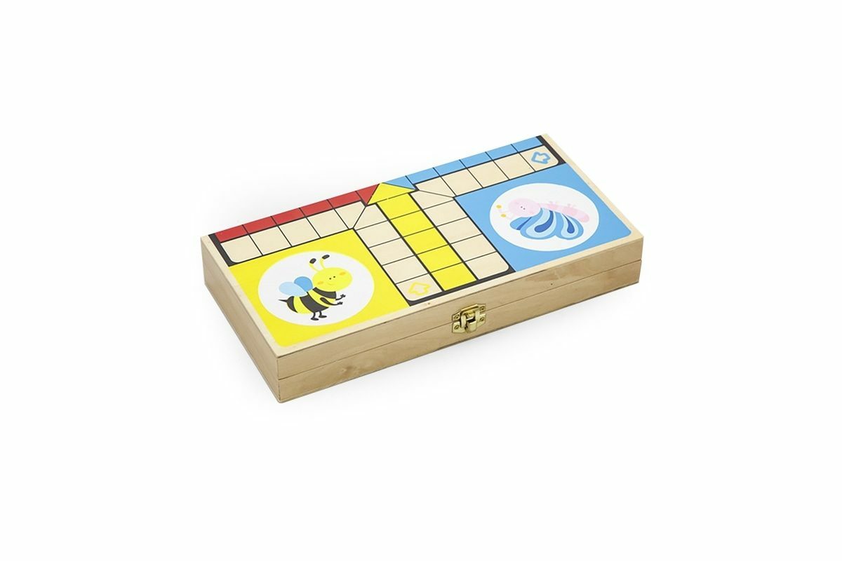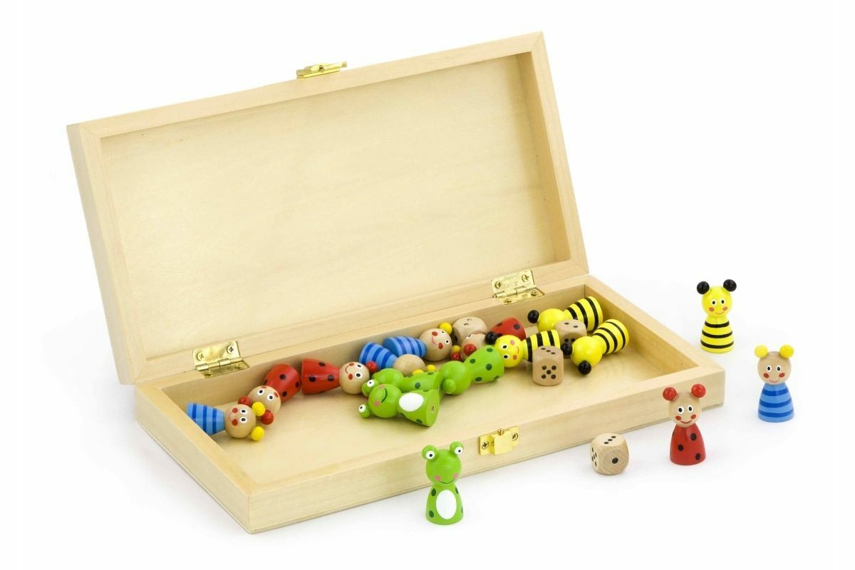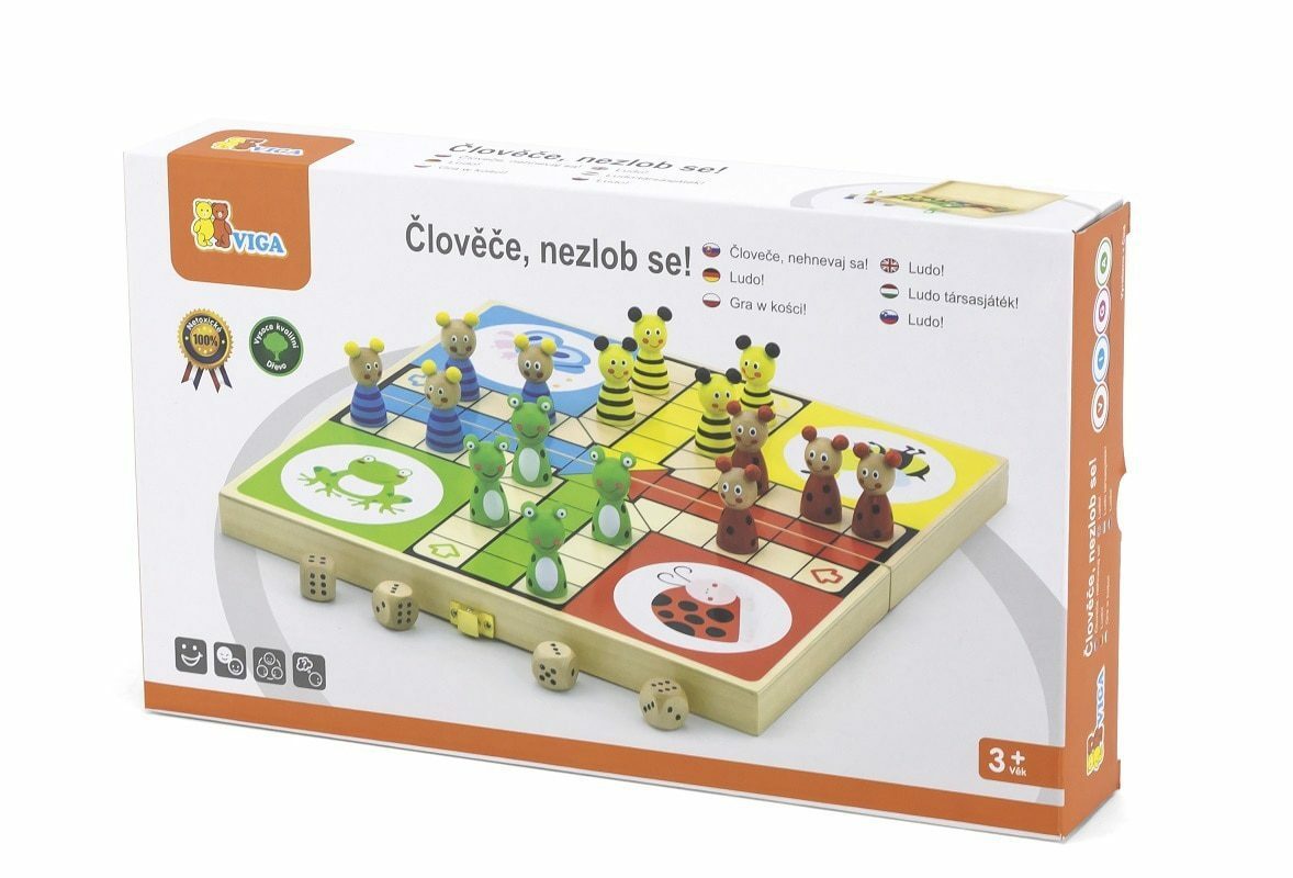 Dřevěné člověče, nezlob se s motivy zvířátek v české krabici. Balení obsahuje 16 figurek, 4 kostky a dřevěnou krabici s herním plánem, sloužící také jako krabička na uskladnění hry. Rozměry balení cca 31 x 18,5 x 5 cm. Věk 3+