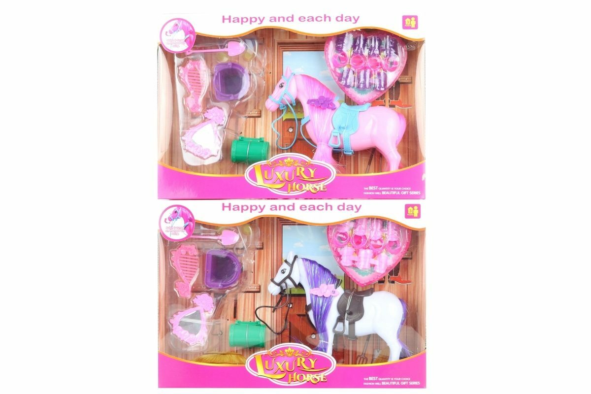 Plastový česací kůň s doplňky. Balení obsahuje koně o velikosti cca 18 x 15 cm, hřebínek, zrcátko, sponku a další doplňky. Rozměry balení cca 33 x 23,5 x 5,5 cm. Věk 3+