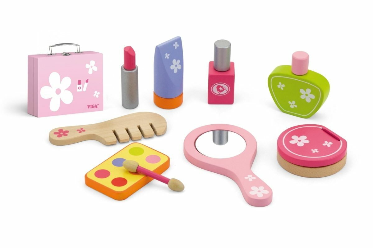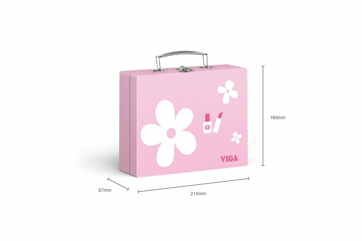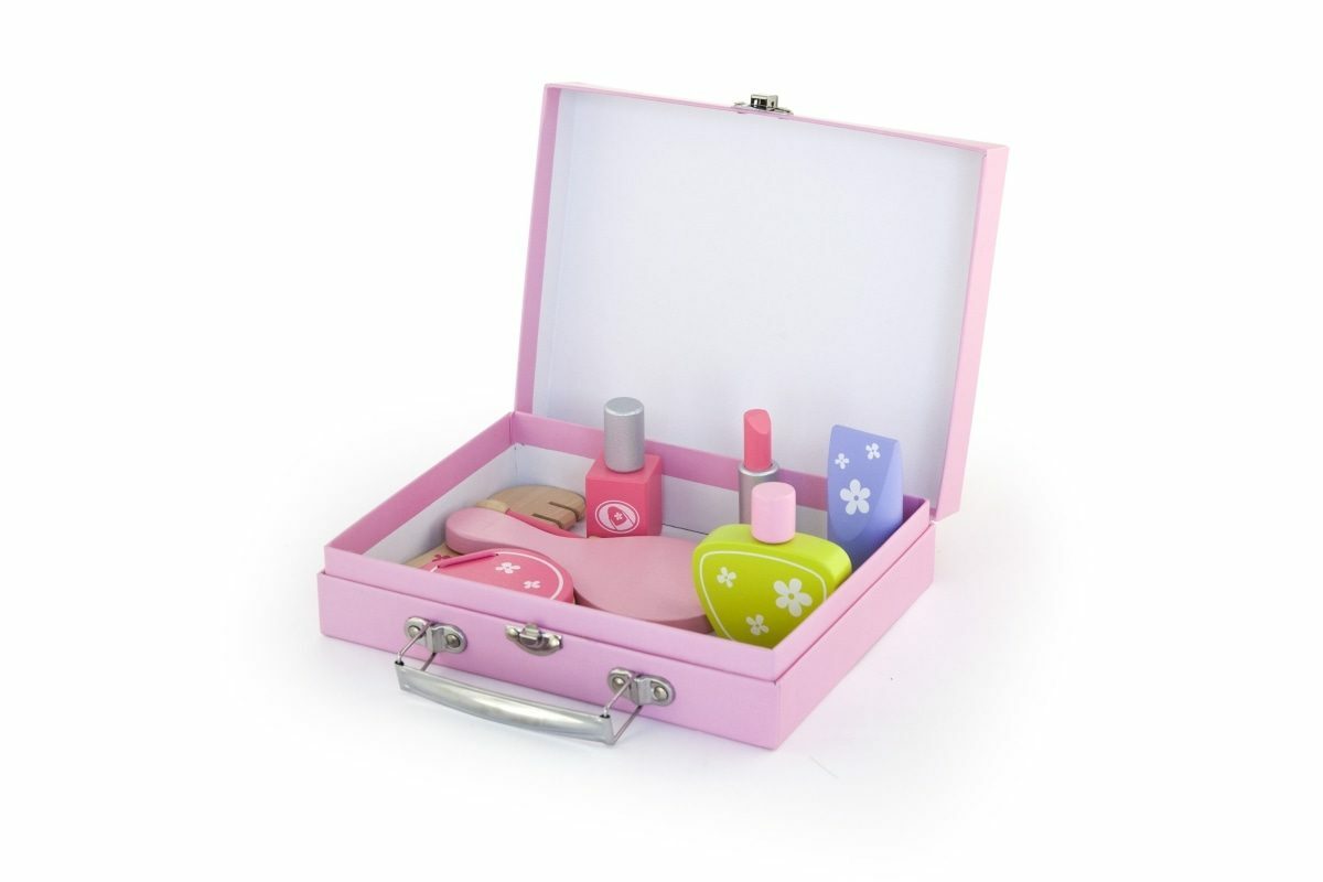 Dřevěná sada krásy. Balení obsahuje hřeben, zrcátko, lak na nehty a další doplňky. Vše je zabalené do praktického dřevěného kufříku. Rozměry balení cca 21 x 16 x 6,5 cm. Věk 3+
