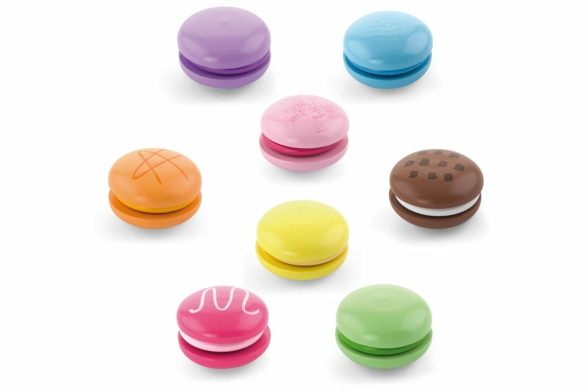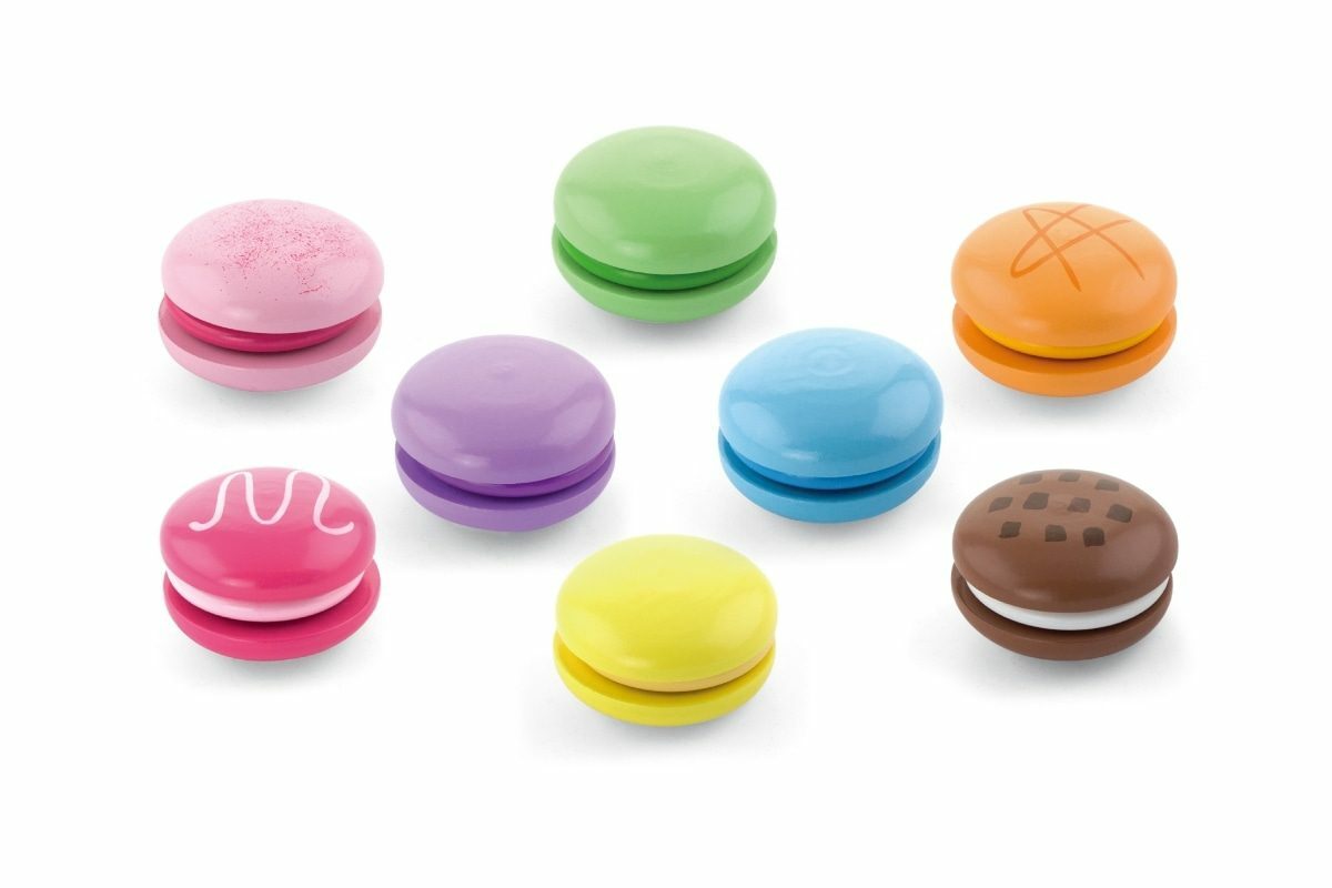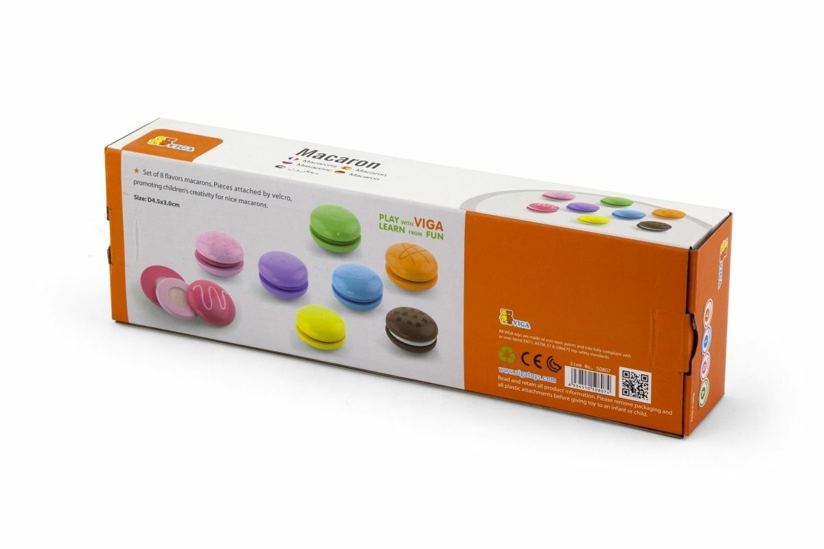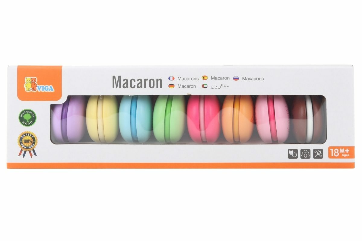 Sada 8 kusů dřevěných makronek. Rozměr jedné makronky cca 4,5 x 3 cm. Rozměry balení cca 30 x 9 x 5 cm. Věk 18m+