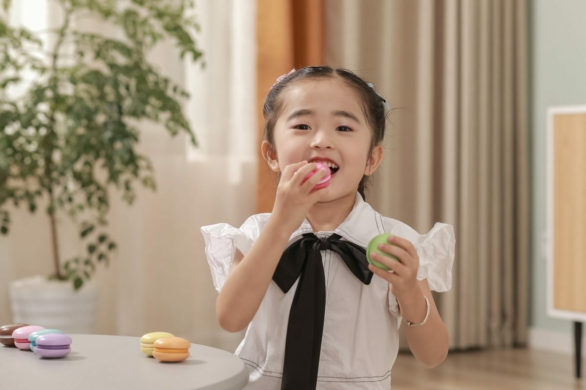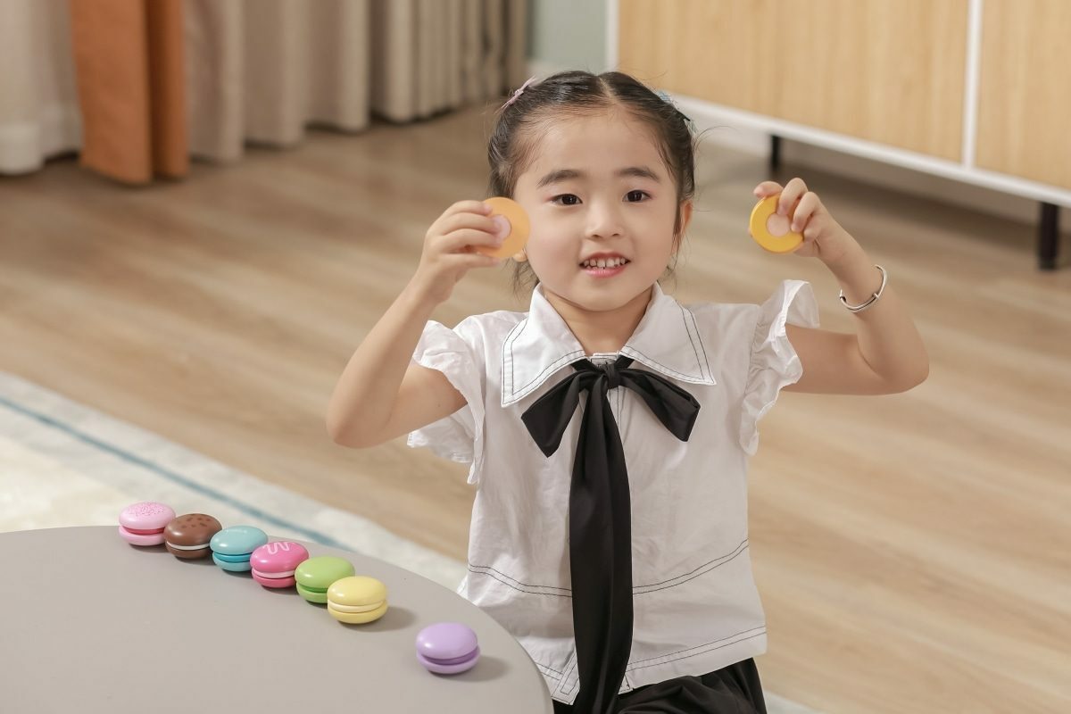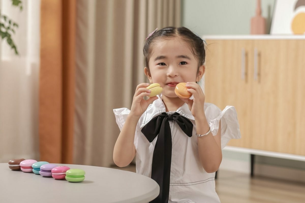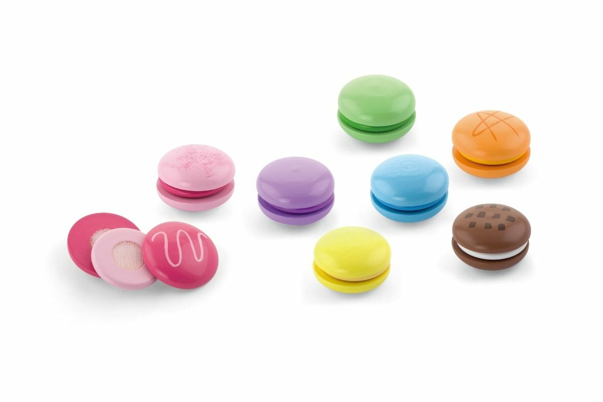 Sada 8 kusů dřevěných makronek. Rozměr jedné makronky cca 4,5 x 3 cm. Rozměry balení cca 30 x 9 x 5 cm. Věk 18m+