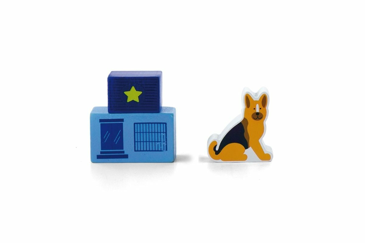 Dřevěné policejní figurky o rozměru cca 6 cm. Obsahuje 7 dílků. Rozměry balení cca 34 x 3,5 x 7,5 cm. Věk 3+