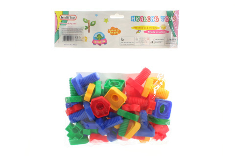 Stavebnice ve tvaru šroubků a matic. Podporuje dětskou představivost a motoriku. Rozměr balení cca 32 x 29 x 5 cm. Rozměr jedného šroubu cca 6 cm. Materiál plast. Věk 3+