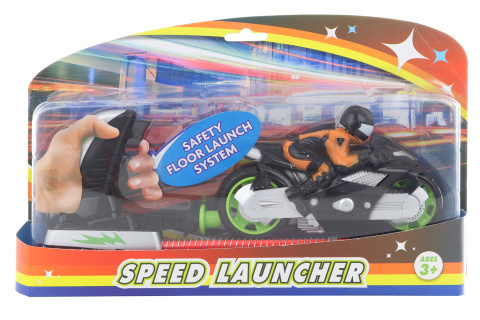 Vystřelovací motorka o velikosti cca 16 x 10 cm. Rozměry balení cca 33 x 20 x 5,5 cm. Věk 3+