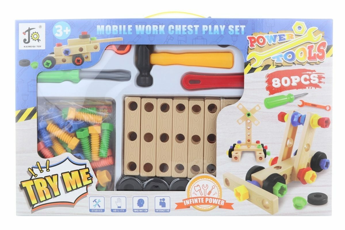 Plastová stavebnice s nářadím. Stavebnice obsahuje celkem 80 dílů (například kladivo, šroubovák, klíč a další). Rozměry balení cca 48 x 30 x 4,5 cm. Věk 3+