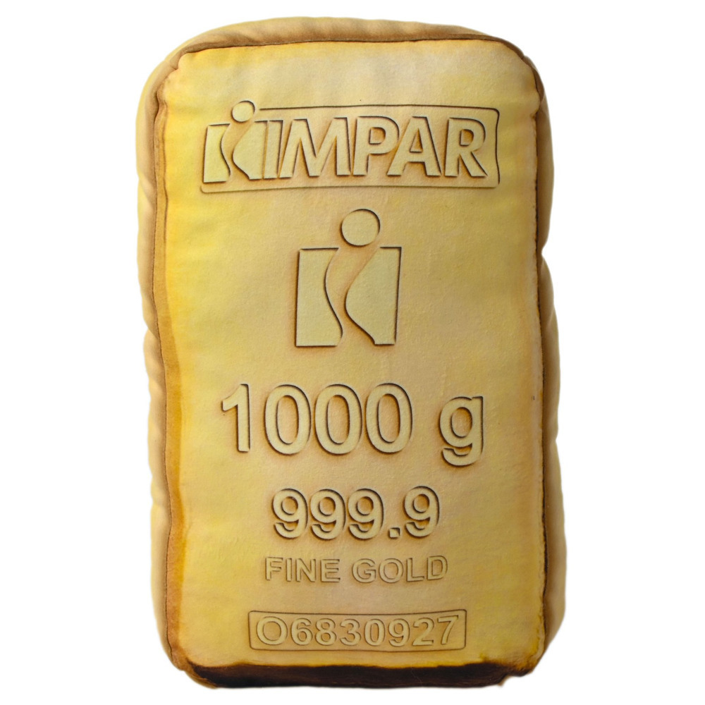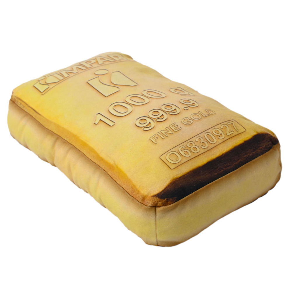 Realistický 3D polštářek ve tvaru zlaté cihličky. Rozměry: cca 45x25x8cm. Materiál: oboustranně česaný fleece 190g/m2.