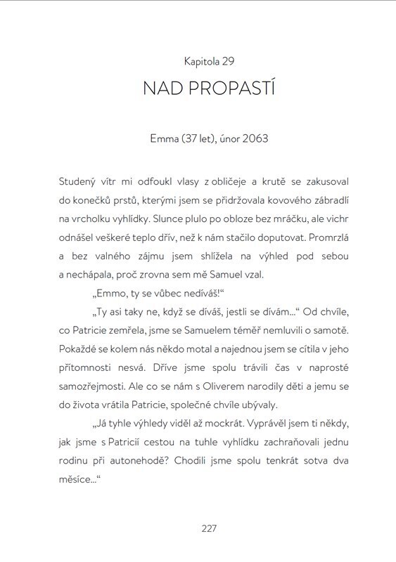 Pilot Samuel a fotografka Patricie se setkali po třiceti letech odloučení a doufali, že už spolu budou napořád. Věřili, že jim to život dluží. Ale Patricie opustí Samuela. Navždy. Děj prolínají střípky minulosti, kdy se ponoříme do sledování osudů nejen hlavních hrdinů, ale také Emmy, dívky,...