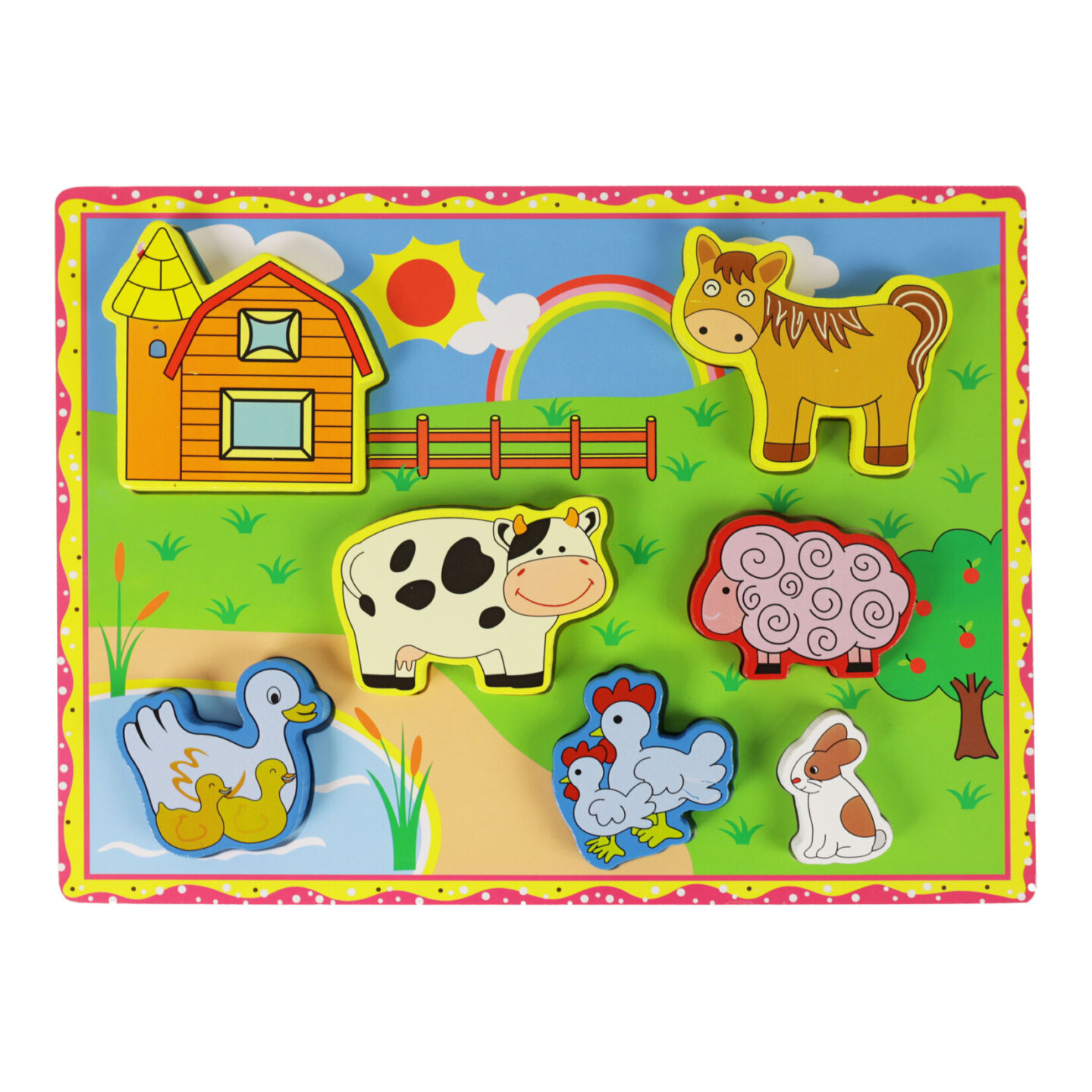 Dřevěná 3D vkládačka je určena pro ty nejmenší. S touto praktickou hrou s motivy zvířátek z farmy si užiješ zaručeně spostu zábavy! Do příslušných otvorů vkládáš správné tvary a přitom rozvíjíš své motorické schopnosti. Paráda!