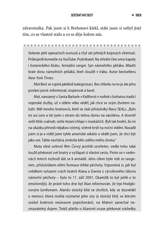 Od oblohy nad Afghánistánem přes Středozemní moře až po nebezpečné ulice Iráku, tam všude tito stateční muži a ženy plnili své vojenské mise. Co však spojuje hrdinné bojovníky oceněné mnoha vyznamenáními? Kde čerpali inspiraci pro službu vlasti? Co pro ně znamená osobní oběť? A čemu se od nich...