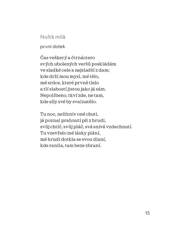 Osobitá sbírka milostných sonetů a dalších působivých básní o břízách, samotě, noci a tajemství si zaslouží pozornost pro své formální zpracování, rytmickou znělost, různorodost námětů a rozkvetlou češtinu, která veršům dodává poetický půvab. Básně navíc doprovází snové ilustrace, v rukou tak...