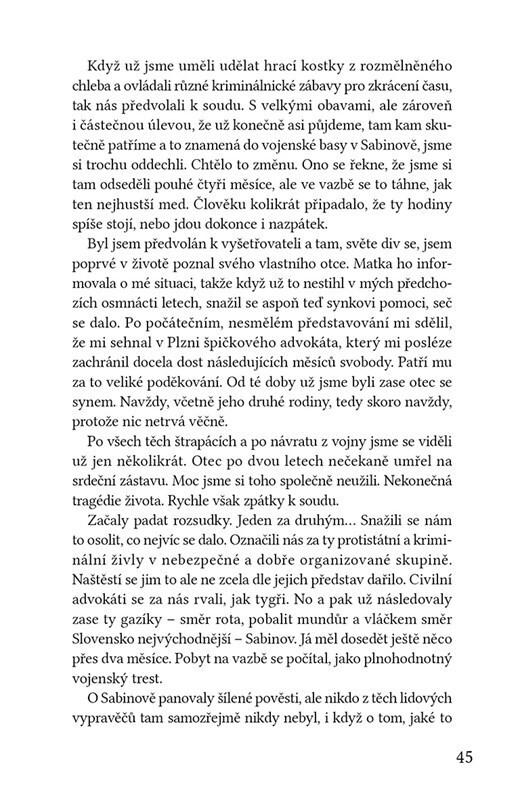 Průřez zhruba čtyřiceti let jednoho málem zmařeného života. Autobiografický, dost drsný životní příběh proložený často humornými zážitky ovlivněnými jak závislostmi na alkoholu a hracích automatech, tak i dobou a politickým děním. V knize se dočtete, jak lehce může člověk do jakékoliv závislosti...
