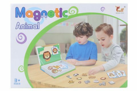 Magnetická stavebnice se zvířátky. Balení obsahuje 34 magnetických dílů a 8 kartiček, dle který lze skládat obrázky. Vše je uložené v praktickém boxu. Rozměry balení cca 26,5 x 19 x 3,5 cm. Věk 3+