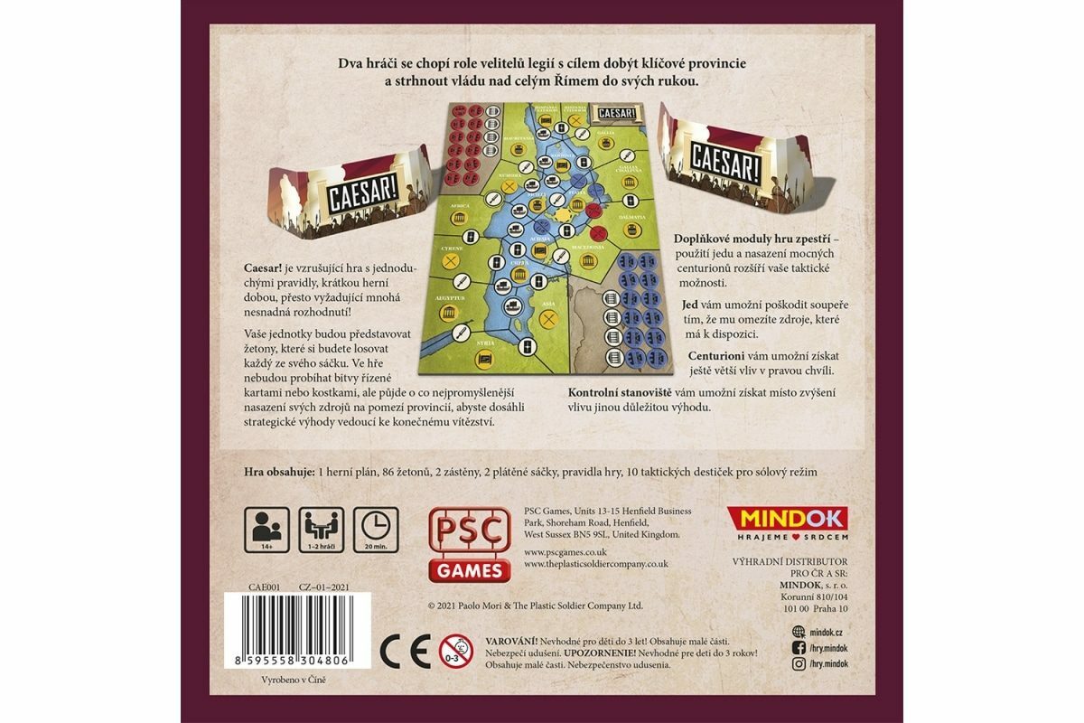 Dva hráči se chopí role velitelů legií s cílem dobýt klíčové provincie a strhnout vládu nad celým Římem do svých rukou. Caesar! je vzrušující hra s jednoduchými pravidly, krátkou herní dobou, přesto vyžadující mnohá nesnadná rozhodnutí! Vaše jednotky budou