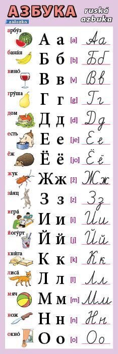 Praktická záložka obsahuje tiskací a psací písmena ruské abecedy včetně výslovnosti a názorného obrázku....