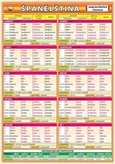 Přehledné tabulky časování španělských nepravidelných sloves....