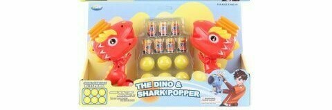 Plastové pistolky ve tvaru dinosaura na pěnové míčky. Balení obsahuje dvě pistolky o velikosti cca 14 x 12 x 7 cm, 6 pěnových míčků a 7 plastových plechovek. Rozměry balení cca 32 x 21 x 6,5 cm. Věk 4+
