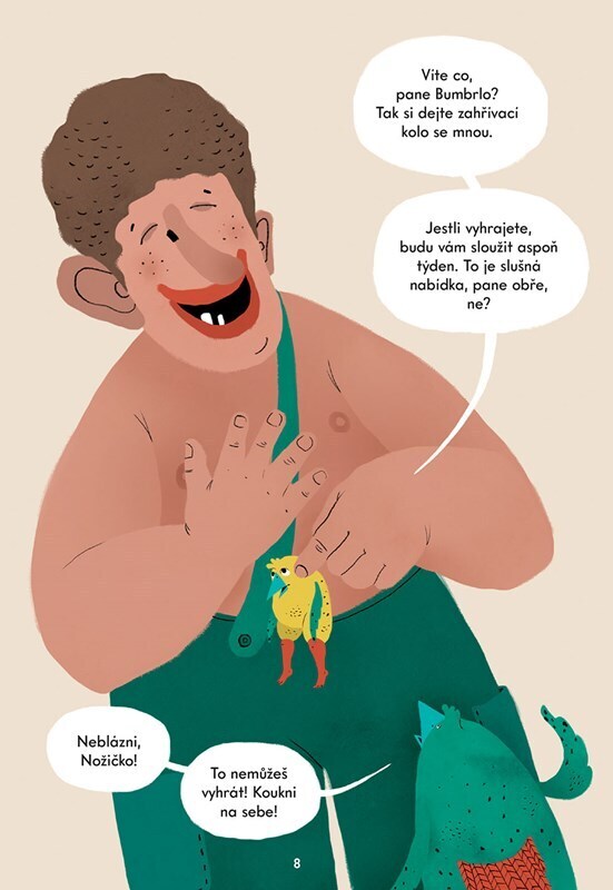 V lese, kde žijí naši ptáci, žije taky obr Bumbrla. Bumbrla je nemehlo a poděs, kam šlápne, něco rozšlápne. Taky rád závodí. Dneska si dá závod s ptáčkem Nožičkou. Ale copak Nožička může vyhrát? Nemůže! Vždyť má jen bosé lidské nožky a skoro neumí běhat! Jenže když závod prohraje, Bumbrla si ho...