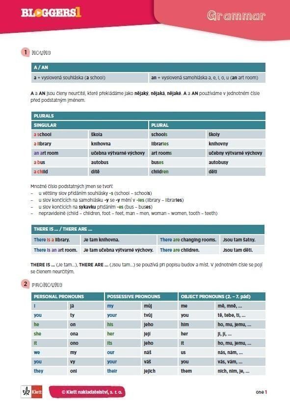 Bloggers 1 (A1.1) – gramatický přehled (leporelo)