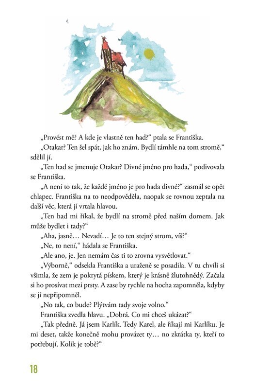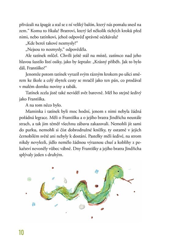 Devítiletá Františka žije v dočista černobílém světě. Jednoho večera ji v pokojíčku navštíví barevný had. Nabídne jí, že ji zavede tam, kde to není všechno stejné a smutné. Františka neváhá. Vydává se na cestu do světa plného barev, kde začne rozkrývat černobílé tajemství své rodiny. Kniha je...