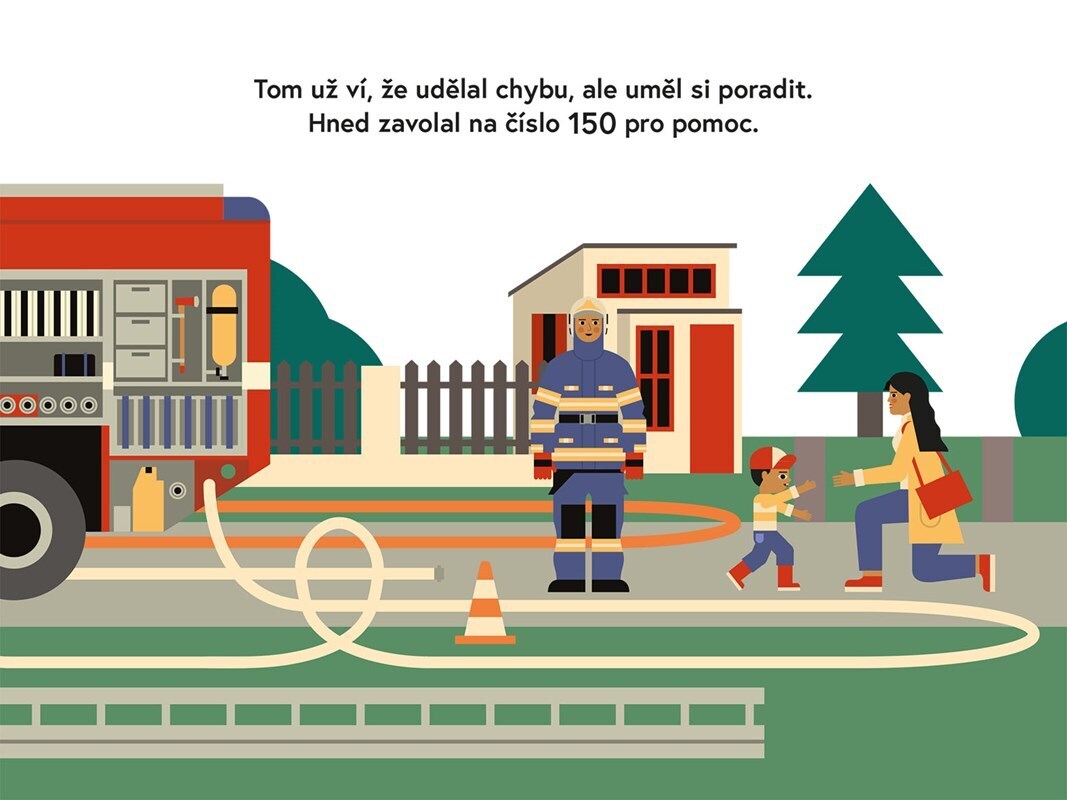 Hoří! Pejsek Ben pronásledoval zlomyslného kocoura a převrhl Tomovi při jeho chemickém pokusu svíčku. Co teď? Tomáš si umí poradit, zatelefonuje na číslo 150 a během minutky je u zahradního domku hasičské zásahové vozidlo. Tom s Benem sledují ten cvrkot, voda z hadic už stříká, po ohni za...