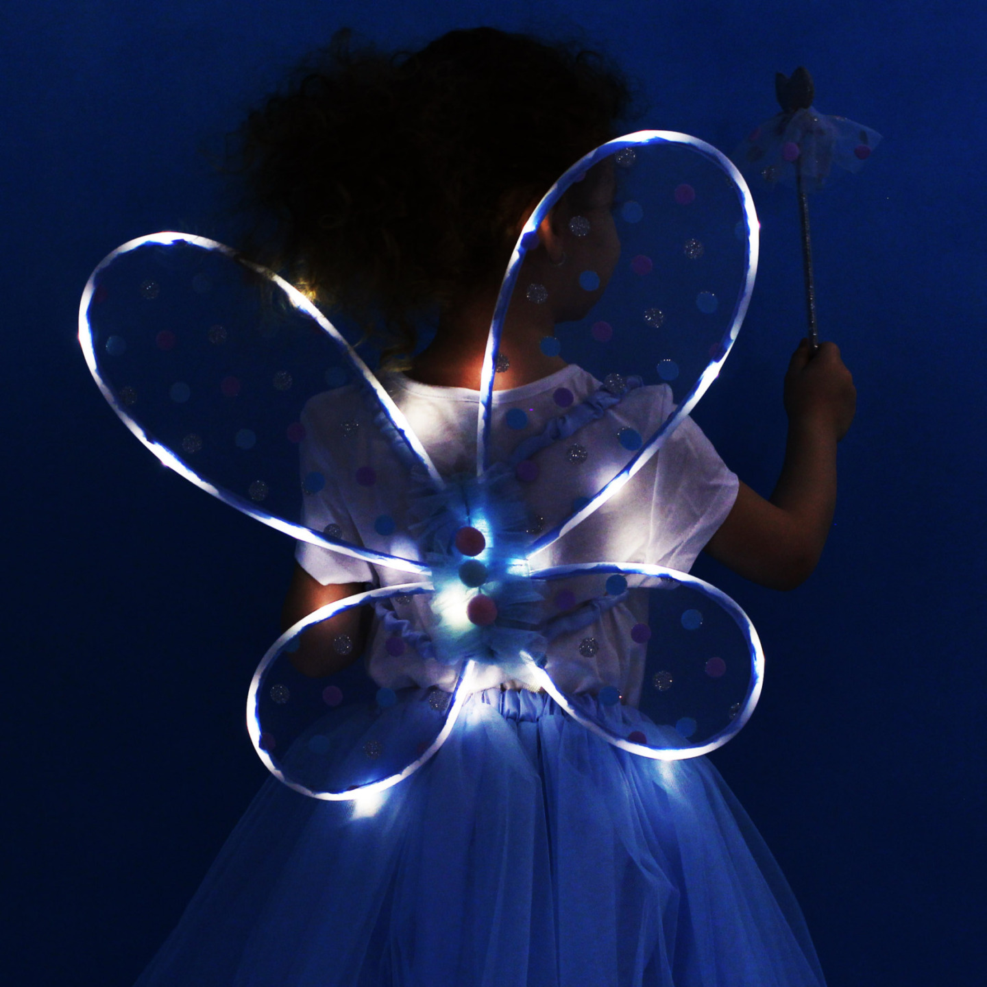 Dětský kostým tutu sukně víla Modřenka se svítícími křídly