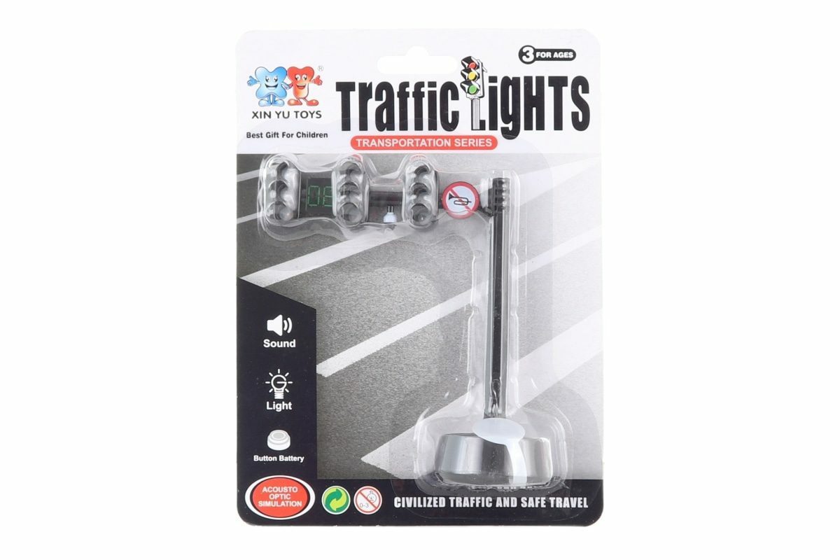 Semafor na baterie. Napájení na 3 AG13 baterie (jsou součástí). Po zmáčknutí semafor svítí a vydává zvuky. Rozměry sefamoru cca 11,5 x 10,5 cm. Rozměry balení cca 14 x 19 x 5 cm. Věk 3+