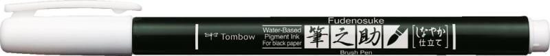 Fix Fudenosuke (brush pen) s elastickým štětcovým hrotem (typu soft) vhodný pro psaní na černý či jiný tmavý odstín papíru. „Kou...