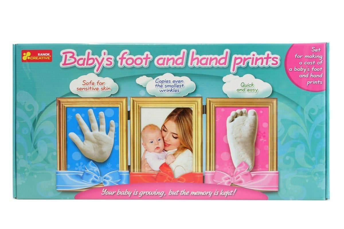 Velká sada pro otisk nožičky a ručičky Vašeho děťátka. Součástí je i třídílný dámeček do kterého lze otisky vložit. Balení obsahuje plastové formy, modelovací gel, sádru, lepidlo a další potřeby. Rozměr balení cca 51 x 25 x 4 cm. Věk 3+. Pod dohledem dospělých lze použít pro děti od narození....