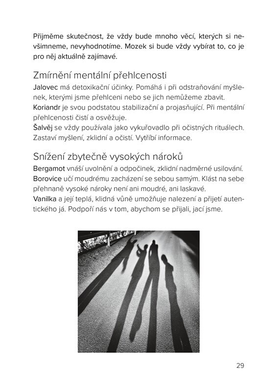 Přírodní vůně ovlivňovaly lidskou psychiku již od pradávna. Autorka Barbora Krejčí, psychoterapeutka a aromaterapeutka, propojila své zkušenosti z obou těchto oborů a ve své knize ukazuje, jak nás aromaterapie může provázet každodenností, jak může podporovat psychickou pohodu, usnadňovat řešení...