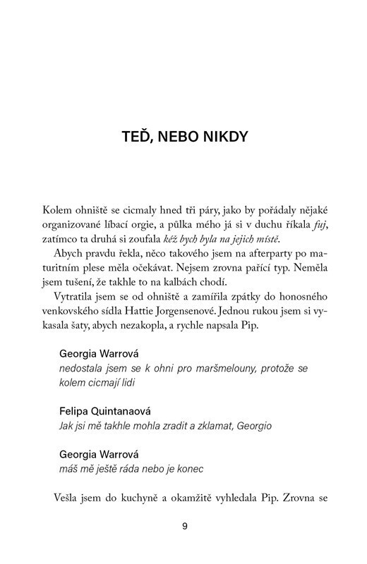 Georgia ještě nikdy nebyla zamilovaná, jako správná romantička posedlá fanfikcemi ale věří, že tu pravou osobu jednou najde. Když se dostane na univerzitu, má k tomu skvělou příležitost. Jenže zatímco ostatním nedělají vztahy potíže, ona si neví rady. A s tím, jak se před ní vynořují dříve...