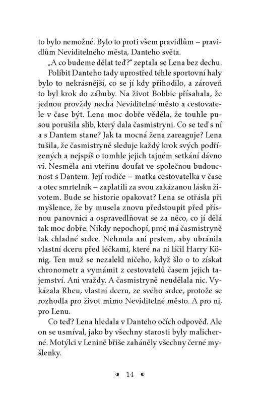 Lena se jen těžko vrací do normálního života. Jak má po všem jen tak zapomenout na Danteho? Brzy na ni ale čekají daleko větší starosti: na školním výletě zjistí, že její pronásledovatel to zdaleka nevzdal. Na poslední chvíli podstrčí chronometr, se kterým může cestovat časem, kamarádce Bobbie....
