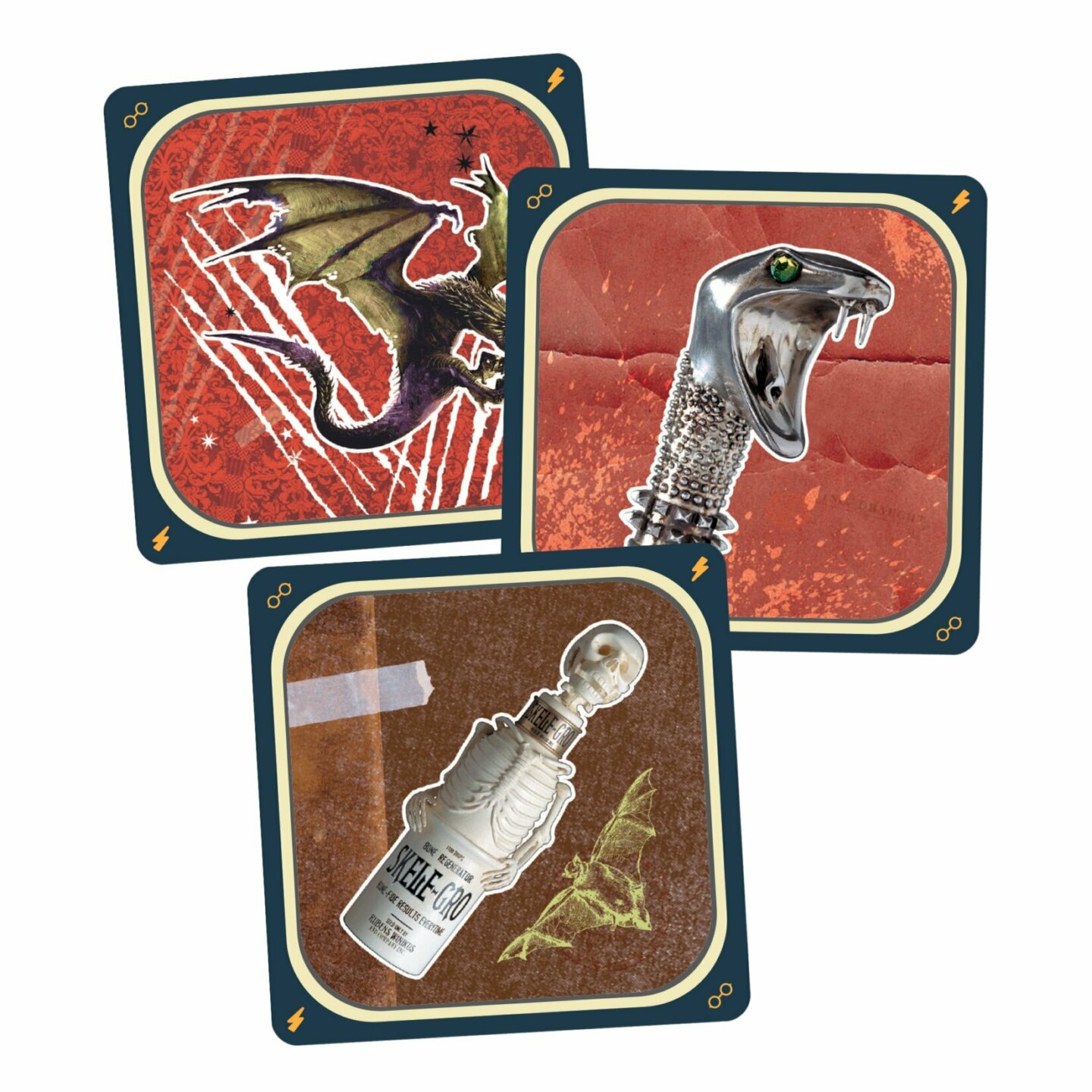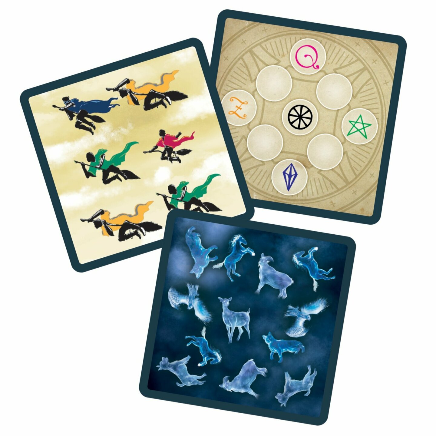 také 10 unikátních reliéfních hmatových karet. Obsah balení: 90 karet (74 karet s úkoly, 6 hmatových karet výzev, 10 reliéfních hmatových karet) 6 puzzle Bradavic (24 dílků) 1 česká a slovenská pravidla