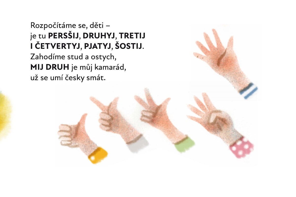 Leporelo z pera oceňovaného Robina Krále. Jeho verše atraktivní formou seznamují děti se základními ukrajinskými slovíčky, které se jim mohou nyní ve školce hodit a pomoci prolomit případnou jazykovou bariéru... nebo zkrátka potěšit nové kamarády.