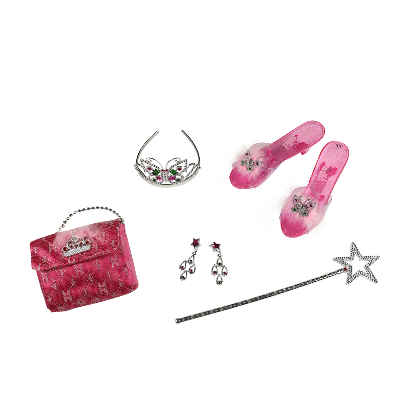 Stát se na chvíli pohádkovou princeznou? Díky této sadě to zvládneš i ty! Set obsahuje střevíčky, kabelku, čelenku s korunkou, náušnice a hůlku. Velikost střevíčků je cca 19 cm. Doporučeno pro děvčata od 3 let.
