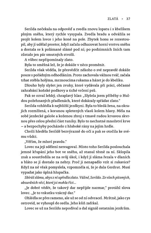 Obyčejná mlynářova dcera Serilda má neobyčejný dar: spřádat uhrančivé a fantazijní příběhy, ve kterých zdánlivě není ani špetka pravdy. Jedním z nich však upoutá krutého Krále duchů, pána nemrtvých lovců a přízraků v temném světě plném záhadných bytostí. Dostane od něj nesplnitelný úkol: upříst...