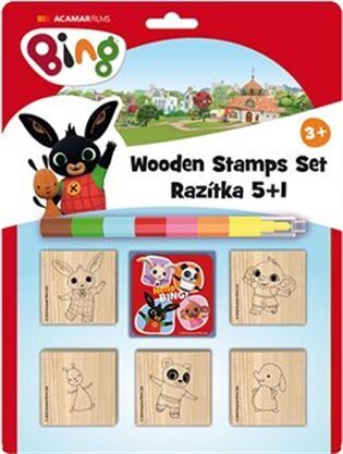 Set obsahuje 5 snadno uchopitelných dřevěných razítek, barevnou podušku s oblíbeným motivem a sedmibarevnou skládací voskovku pro vybarvování.