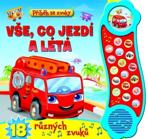 Veselá knížka s celostránkovými ilustracemi a krátkým vyprávěním plným různých dopravních prostředků, která je doplněna tlačítky...