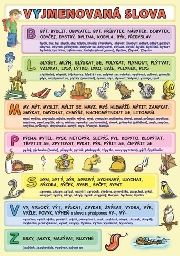 Přehledně zpracovaná ilustrovaná vyjmenovaná slova a slova od nich odvozená doplněná pravopisnými významovými rozdíly v praktick...