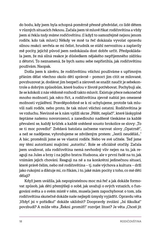Co je to rodičovština? Zdánlivě nevinné fráze, které rodiče používají v komunikaci s malými dětmi. Věděli jste, že pochvalou „To se ti moc povedlo!“ můžete dítěti ve skutečnosti ublížit nebo že když potomka nutíte, aby hezky poděkoval, jde o nejhorší možný způsob, jak ho naučit slušnému chování?...