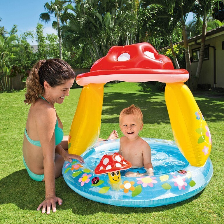 Krásný nafukovací bazének ve tvaru muchomůrky se střechou nesmí v létě chybět na žádné zahradě! Bazén je vyroben z kvalitního PVC materiálu a jeho rozměry činí 102 x 89 cm. Dopřej si to pravé ledové osvěžení! V tomto vychytaném bazénku zažiješ zaručeně spoustu...
