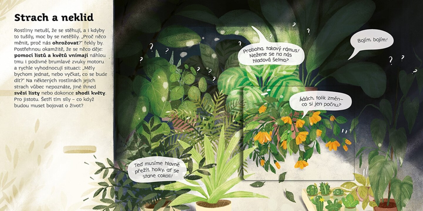 Napadlo tě někdy, že rostliny, které nás obklopují v lese, v parku, na ulici a tak krásně nám umí zdobit byt, jsou pořádně upovídané? Vyprávějí si, varují se, a dokonce si i pomáhají. Díky otevíracím okénkům v této knize jim porozumíš!