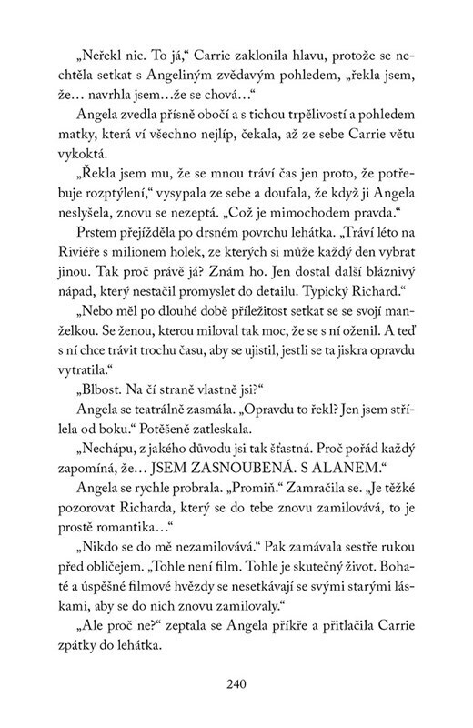 Vztah Carrie s Alanem je na první pohled dokonalý. Až na to, že před snoubencem tají svoji minulost. Má za sebou manželství s Richardem, kterého herecká kariéra odvála do Hollywoodu, takže nikdy nedošlo k jejich rozvodu. Nyní má Carrie příležitost svoji dávnou lásku potkat na Azurovém pobřeží a...