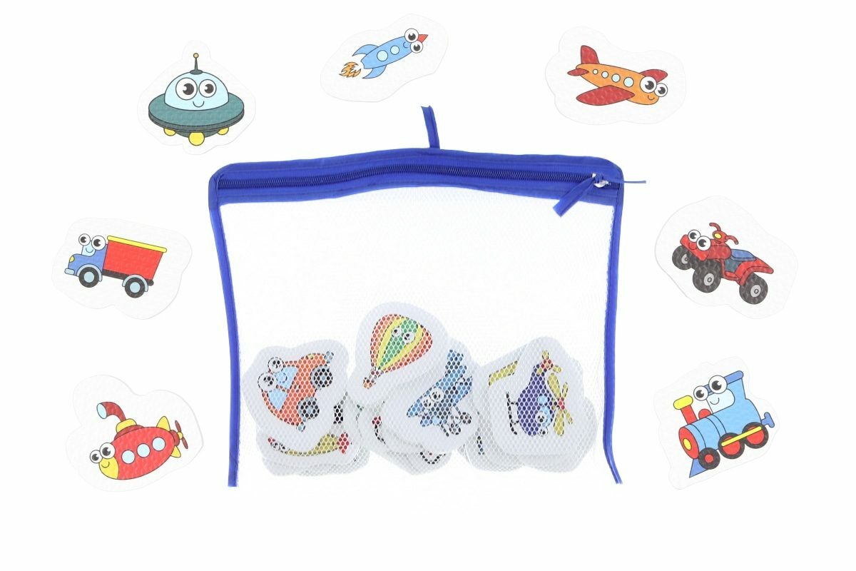 Vodolepky dopravní prostředky zpříjemní vašim dětem chvilky ve vaně i v bazénu. Snadno přilnou k navlhčenému nesavému povrchu a dají se jednoduše sundat. Balení obsahuje 16 dílků. Materiál PE. Baleno s síťce se zipem. Rozměr balení cca 31 x 26 cm. Věk 6m+