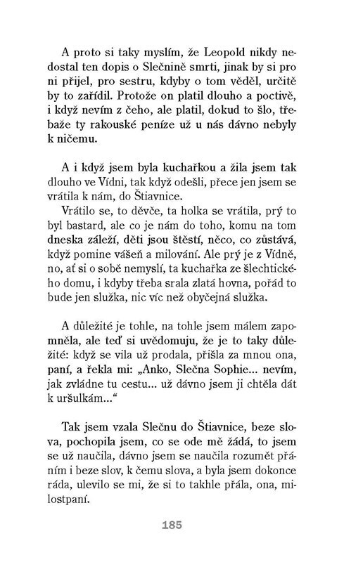 Třetí kniha Hany Lasicové vypráví příběh nemanželské Anny z Banské Šťiavnice, která odešla jako dvanáctiletá do Vídně, aby tam pracovala jako služka v jedné vysoce postavené rodině. Nezkušená dívka, vlastně ještě dítě, se musí vyrovnat nejen se spoustou povinností, těžkou otrockou prací bez...