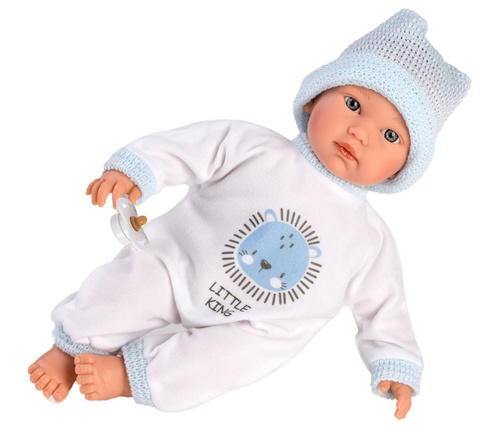 Mluvící miminko s měkkým látkovým tělem, které po zatlačení na hrudník začne říkat „mama“, „papa“ a vydávat reálný zvuk plačícího miminka. Velikost 30 cm. Součástí balení je 3 x knoflíková baterie LR44.